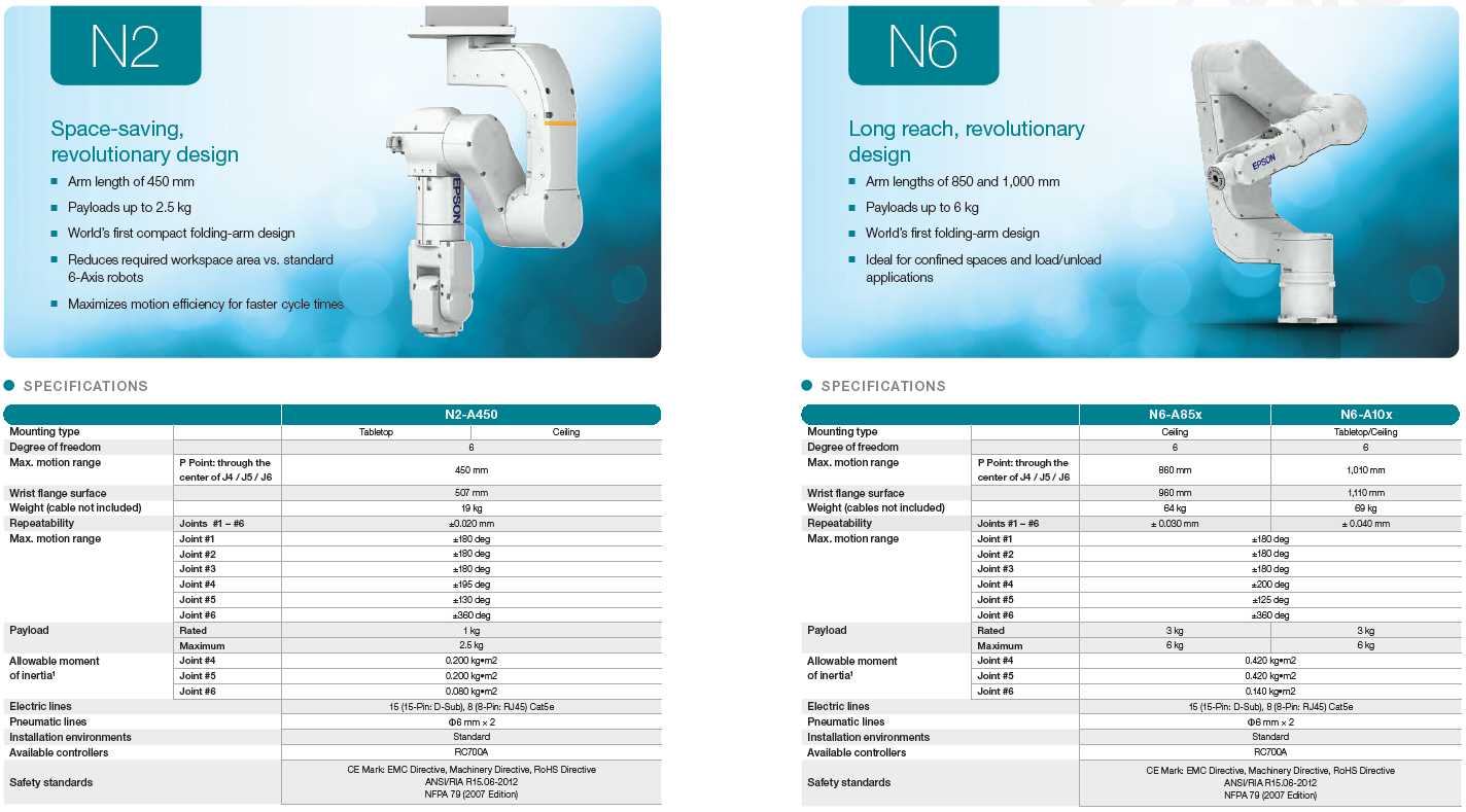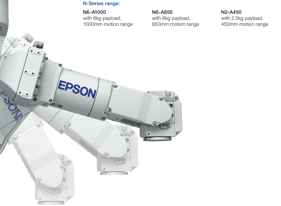 Bei der neuen Epson N-Serie ist die zweite Achse innenorientiert, der Drehpunkt nach unten verlegt. So kann der zweite Achskörper die Nullposition durchfahren.