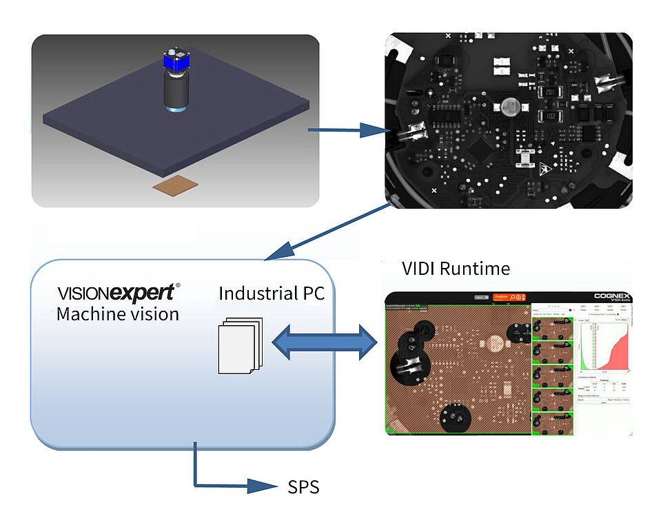 „Das Gesamtsystem besteht aus der Kamera und einer für die Anwendung ausgelegten Beleuchtung, welche die Platinen aufnimmt, sowie einem Industrie-PC mit dem VISIONexpert®-Programm“, sagt L. Vassalli. Ergänzt wird es durch das ViDi-Paket, das als „Black-Box“ arbeitet. Es analysiert die übergebenen Bilder mithilfe seines neuronalen Netzes und liefert entsprechende Beurteilungen zurück. Dies erfolgt verzögerungsfrei innerhalb von Millisekunden im Takt der Produktionslinie. Vor dem Start wurde das System von Compar mithilfe von Bildern zur Verfügung gestellter Musterteile vorkonfiguriert. Im laufenden Einsatz kann das System vom Anwender selbst je nach Bedarf mit neuen Produkten trainiert oder mit Varianten bereits vorhandener Produkte nachtrainiert werden. Für solche Trainingsphasen sind dank der hohen Rechnerleistung lediglich wenige Minuten erforderlich. Beim Training kann man das System entweder direkt mit Fotos „füttern“ oder im Supervisor-Modus Fehlstellen vorab durch Farbmarkierungen hervorheben. Nach kurzer Schulung ist der Kunde imstande, solche Aufgaben selbst durchzuführen. Dies ist eine wesentliche Voraussetzung für den Erfolg des Projekts. Im vorliegenden Fall genügten etwa 50 Bilder von Gutteilen sowie von der gleichen Zahl an Schlechtteilen.