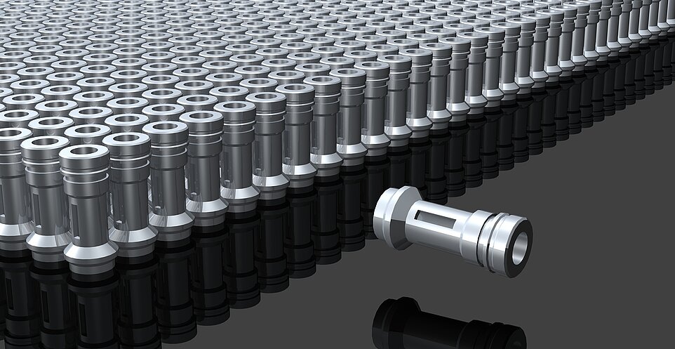 Aufgabe ist es, die als Schüttgut vorhandenen Präzisionsteile für Dentalbohrern in Paletten für den Nachfolgeprozess bereitzustellen. Dafür wurde unser universelles Palettiersystem eingesetzt. Diese Palettierzelle besteht gerade mal aus drei Hauptkomponenten. Feeder, Roboter und Bildverarbeitung. Das Palettiersystem läuft nach dem Befüllen der Teile völlig autonom. Nicht nur ein Teiletyp wird gehandhabt, sondern bis zu 15 Teiletypen. Auch beim Palettieren gibt es bis zu 5 Palettentypen, die eingesetzt werden.