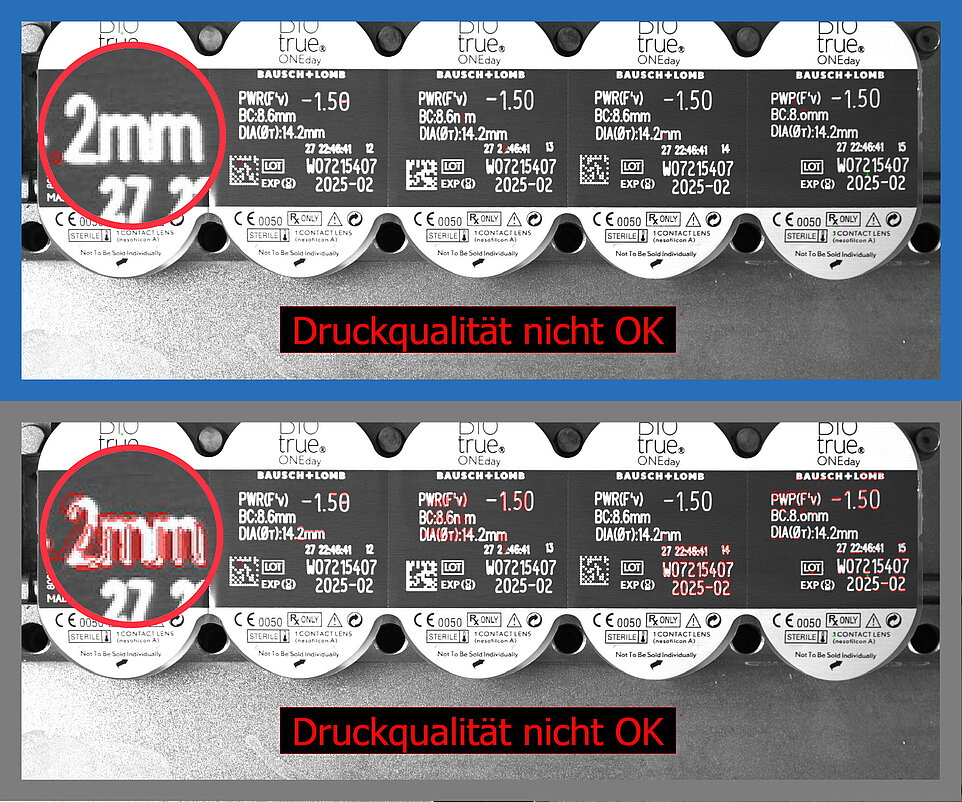 An der Spitze der Anforderungen stünden Branchen wie die Pharma- oder die Uhrenindustrie, wo teils schon Abweichungen im Bereich von Hundertstel Millimeter als Ausschusskriterium gewertet werden. „Um die Bedeutung dieser Entwicklung verstehen zu können, muss man sich vor Augen halten, wie Systeme zur Druckbildkontrolle bisher entstanden sind“, ergänzt R. Haller. Die automatisierte optische Kontrolle von Druckbildern sei beileibe keine einfache Angelegenheit, für die man lediglich einige Gut/Schlecht-Vergleichsbilder benötige. In der Realität seien die Anforderungen oft sehr komplex, weil der Teufel meist im Detail stecke. Das fange schon mit der kaum überschaubaren Vielfalt der eingesetzten Druckverfahren sowie der zu bedruckenden Produkte an. Hinzu komme als weiterer wichtiger Faktor die Festlegung der Toleranzen dessen, was noch akzeptiert werden kann und was nicht. Zudem variiere die Bandbreite der Qualitätsvorgaben je nach Einsatzgebiet enorm.