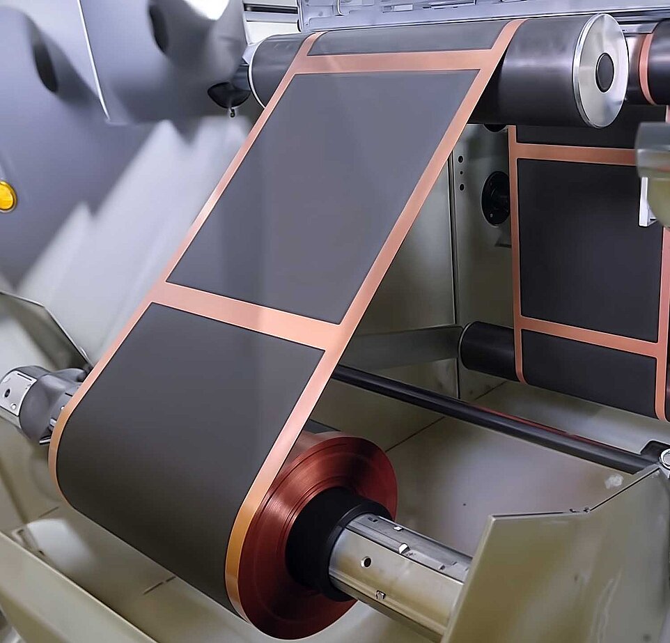 „Obwohl ihr Prinzip schon länger bekannt ist, sind Lithium-Ionen-Akkus für den Straßenverkehr weiterhin eines der heißesten Entwicklungsthemen der Kfz-Hersteller“, ergänzt Nico Brand von der Abteilung für Technisches Engineering. Die Alltagstauglichkeit der derzeit verfügbaren Lösungen bezüglich Reichweite, Ladegeschwindigkeit, Zyklusfestigkeit und Kosten könne viele Kunden nicht überzeugen. Um Fortschritte zu erzielen, müssten zahlreiche mögliche Varianten untersucht und optimiert werden. Prinzipiell ist ein solcher Akkumulator aus Zellen aufgebaut, die jeweils aus Anode und Kathode mit dazwischenliegender Separatorfolie bestehen. Als Anode dient eine Kupferfolie, die mit einer graphithaltigen Anodenmasse belegt ist. Die Kathode besteht aus Aluminium mit einer Beschichtung, die Ionen von Übergangsmetallen wie Cobalt, Nickel, Mangan oder Eisen enthält. Die Separatorfolie ist für die Lithiumionen des Elektrolyten durchlässig und ermöglicht so den Ladungstransport. Die Beschichtungen werden in einer oder auch mehreren Schichten gleichzeitig oder nacheinander als pastöse Masse aufgebracht. Sie enthalten teils hoch gesundheitsschädliche Lösungsmittel, die aufwendige Trocknungs- und Reinigungsverfahren der Abluft erfordern. Das Aufbringen erfolgt mit unterschiedlichen Verfahren wie Schlitzdüsen oder Rakel in Dicken zwischen 10 - 350 µm. Um rationell produzieren zu können, werden auf industrieller Ebene oft möglichst breite Bänder verarbeitet, auf denen dann separate Streifen aufgebracht werden. Manchmal werden die Streifen auch unterbrochen ausgeführt, so dass separate „Patches“ entstehen. Und je nach Anlage wird die Beschichtung zunächst nur auf einer Seite oder gleichzeitig auf Ober- und Unterseite aufgebracht. Bei einseitig arbeitenden Anlagen wird das Band dann in einem zweiten Durchgang auf der Gegenseite beschichtet. Für die Fertigung der eigentlichen Akkumulatoren werden die fertigen Bänder in passgerechte Stück unterteilt, wobei es keinen Versatz zwischen Ober- und Unterseite geben darf.