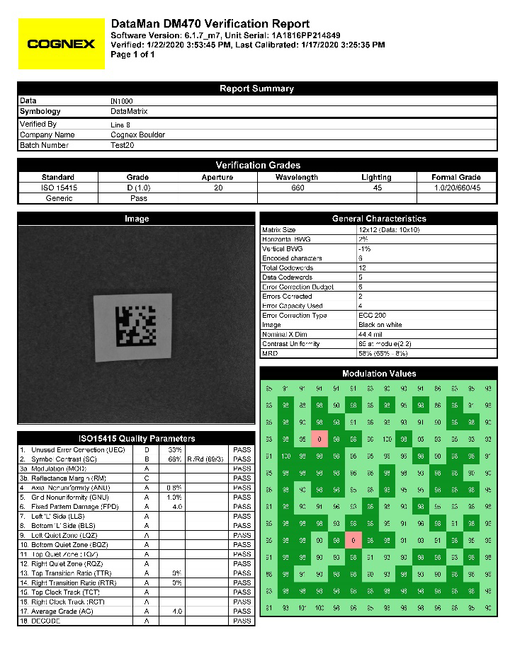 Bei der Verifikation geht es um die Beurteilung der Qualität des aufgebrachten Codes. Damit soll sichergestellt werden, dass die Codes mit Lesegeräten verschiedener Hersteller jederzeit wieder sicher gelesen werden können. Die ISO/IEC Normen 15415 und 15426 definieren, wie die Qualität zu messen ist und eignen sich gut bei Aufdrucken auf Faltschachteln. Für das Direct Part Marking etwa von Metallteilen ist diese Norm jedoch eher ungeeignet. In der Automobilindustrie etwa wird deshalb die AIM DPM – Norm bevorzugt.