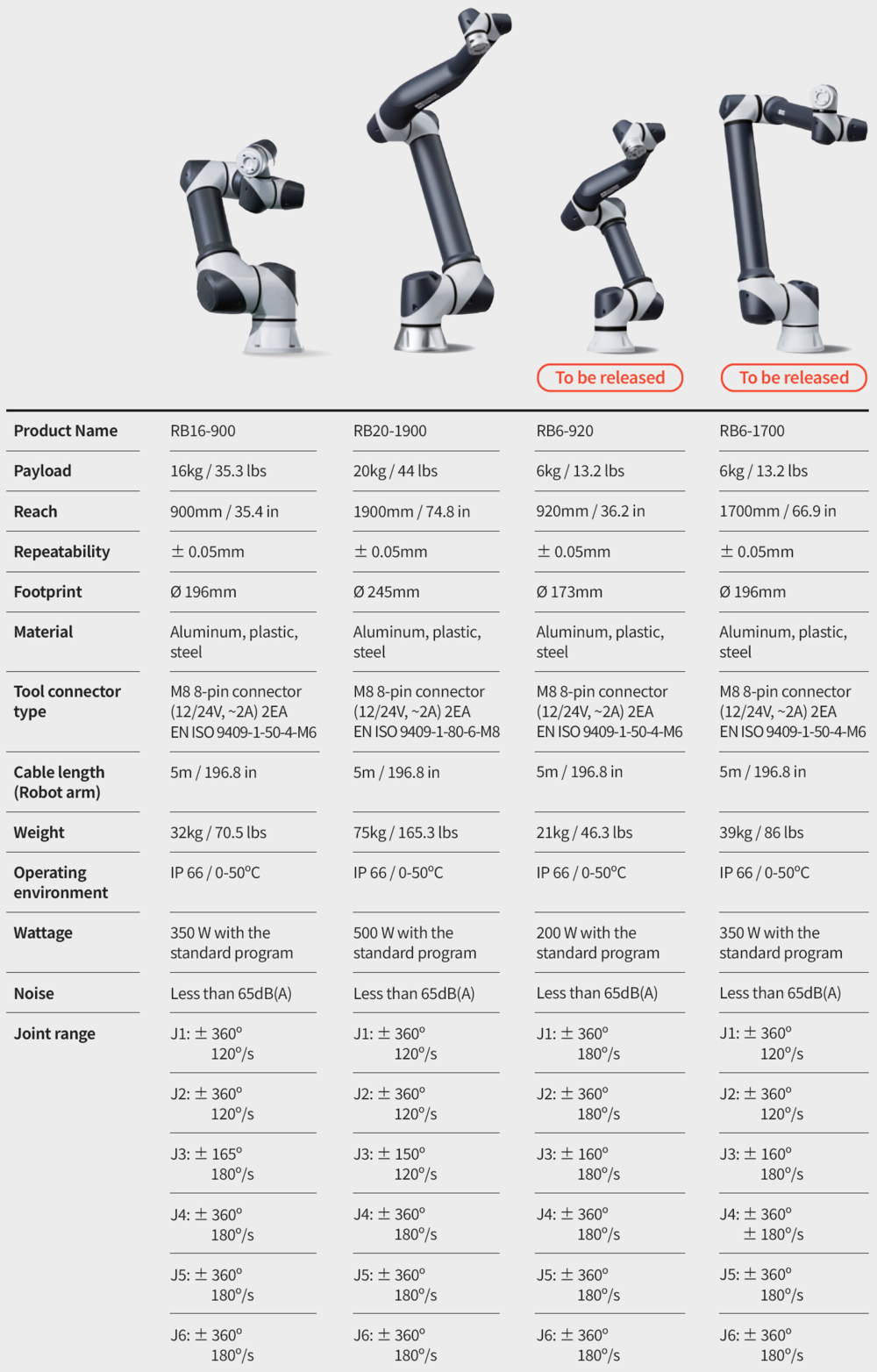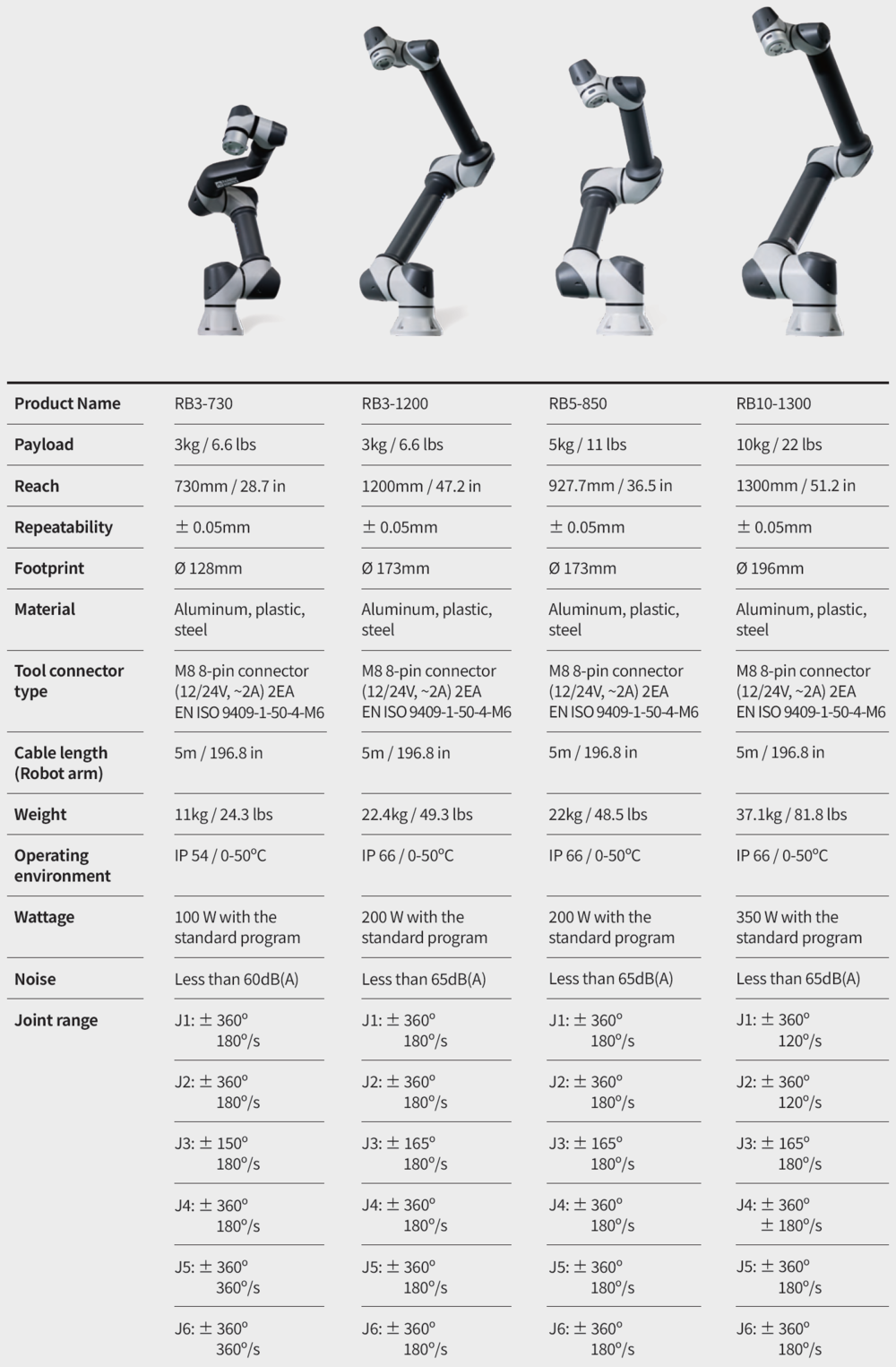 RB Series Cobots offer best-in-class IP ratings (IP66).