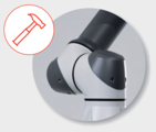 Our cobots' aluminum bodies are ideal for polishing, processing, and welding. With the durable and light hardware, robot can perform reliably in tough manufacturing environments.