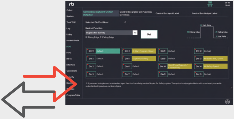 RB Series collaborative robots come with a hand controller. User can use it by setting the desired function to the function keys of the hand controller.
