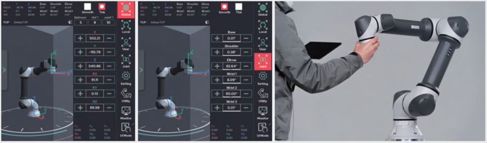 User can also operate the robot using the Hand-Guiding (Free-Drive) function through the button attached to the end of the robot.