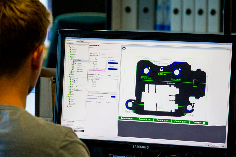 Montagekontrolle, Messtechnik, Druckbild-kontrolle, OCR/OCV, Datamatrix, Robotvision, Pattern Matching COGNEX PatMax, automatische Nachpositionierung von Messfenstern usw.