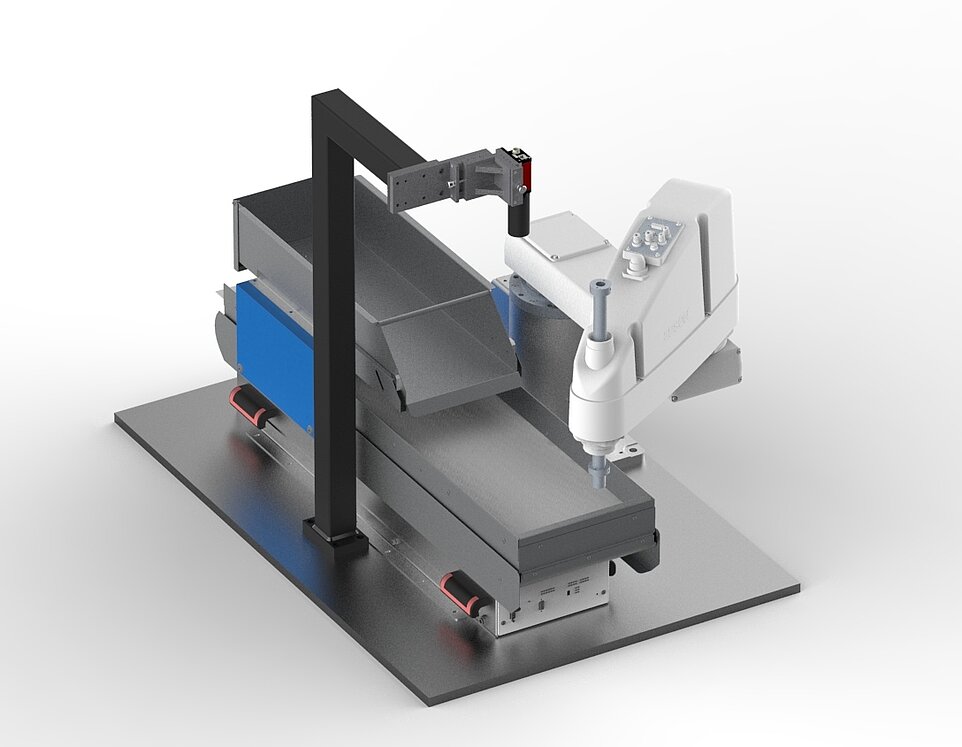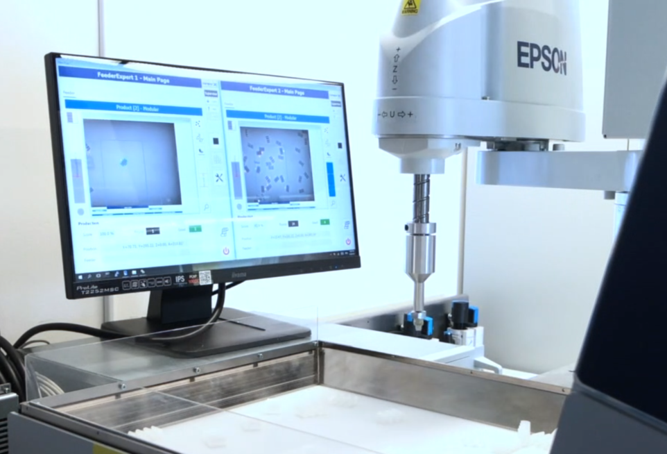 Skalierbares System: Durch die Wahl von passender Fördereinheit und Robotertyp können Teilegrössen von 5 x 5 mm bis 150 x 150mm verarbeitet werden. Das modulare System ermöglicht den Einsatz von SCARA Robotern mit grosser Reichweite, Sechsachsrobotern, Mehr-kamerasystemen auf PC-Basis oder Cognex In-Sight für High Speed Anwendungen.